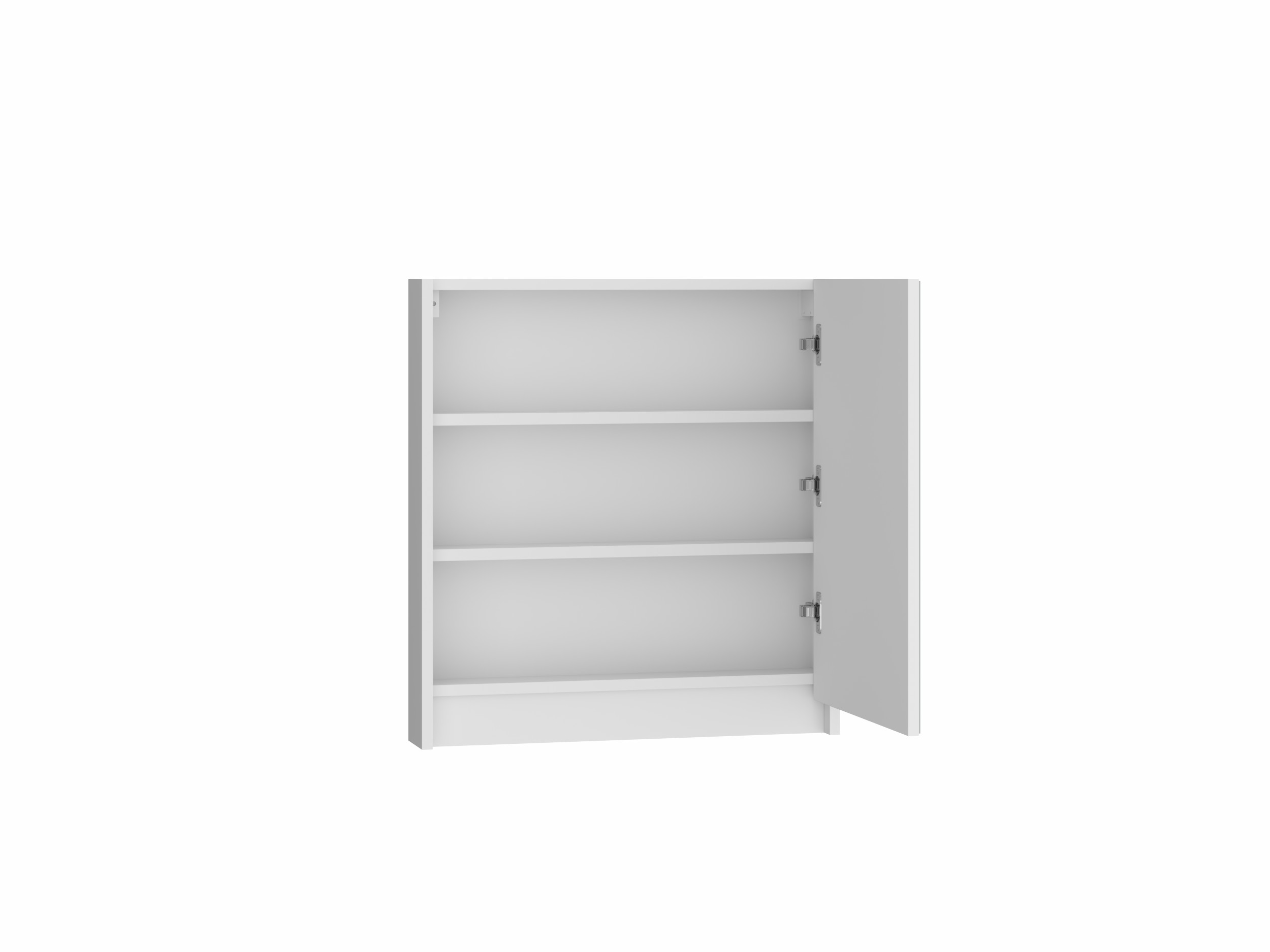 Дзеркальна шафа має одне відділення, розділене двома полицями з ДСП, за одними дверцятами на які наклеєне дзеркальне полотно. Усі необхідні приладдя сховані та легкодоступні.
