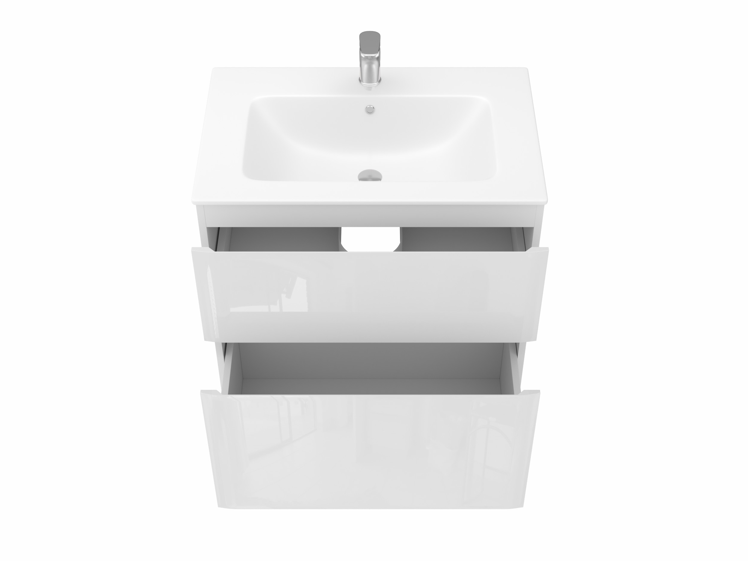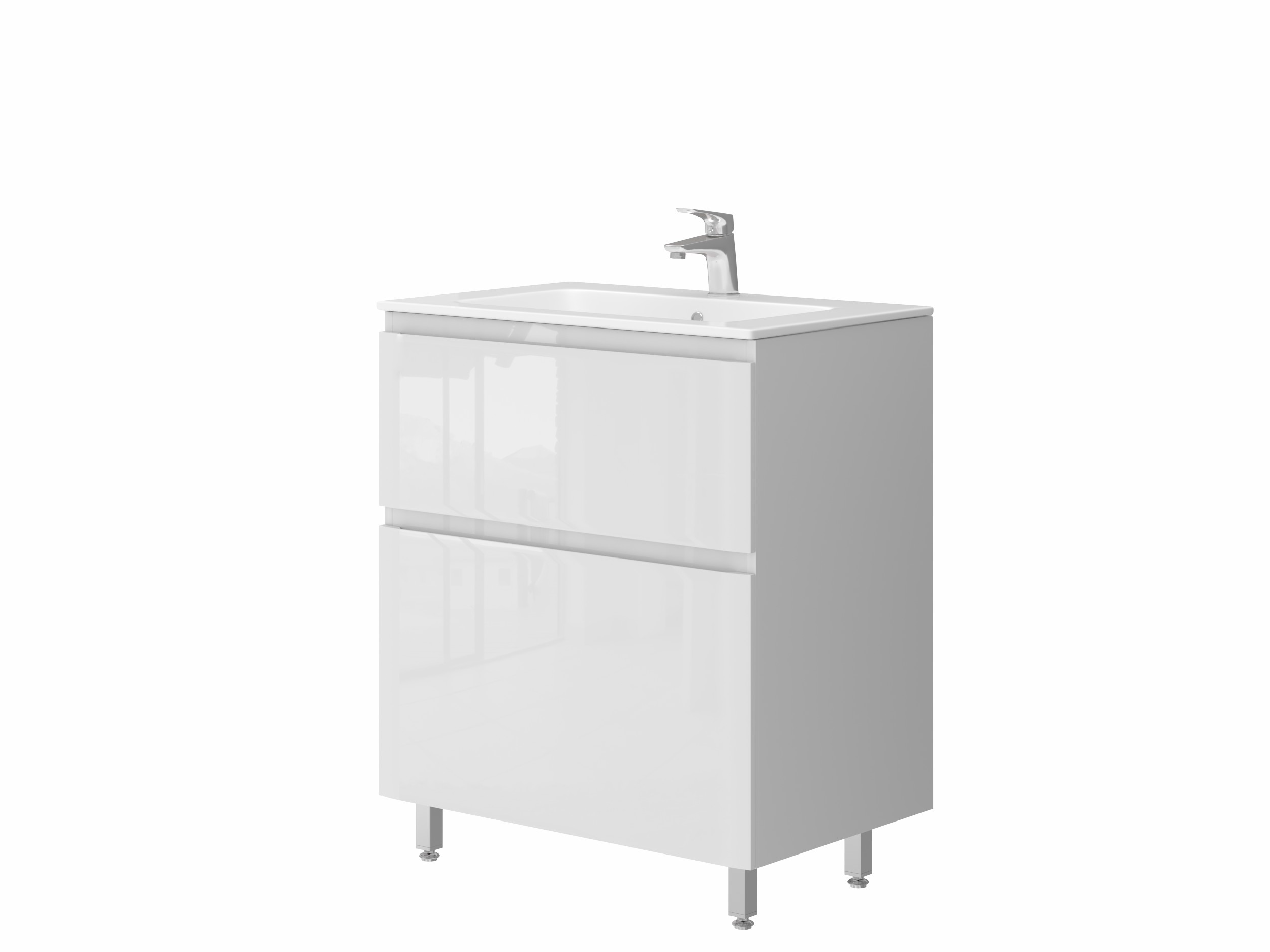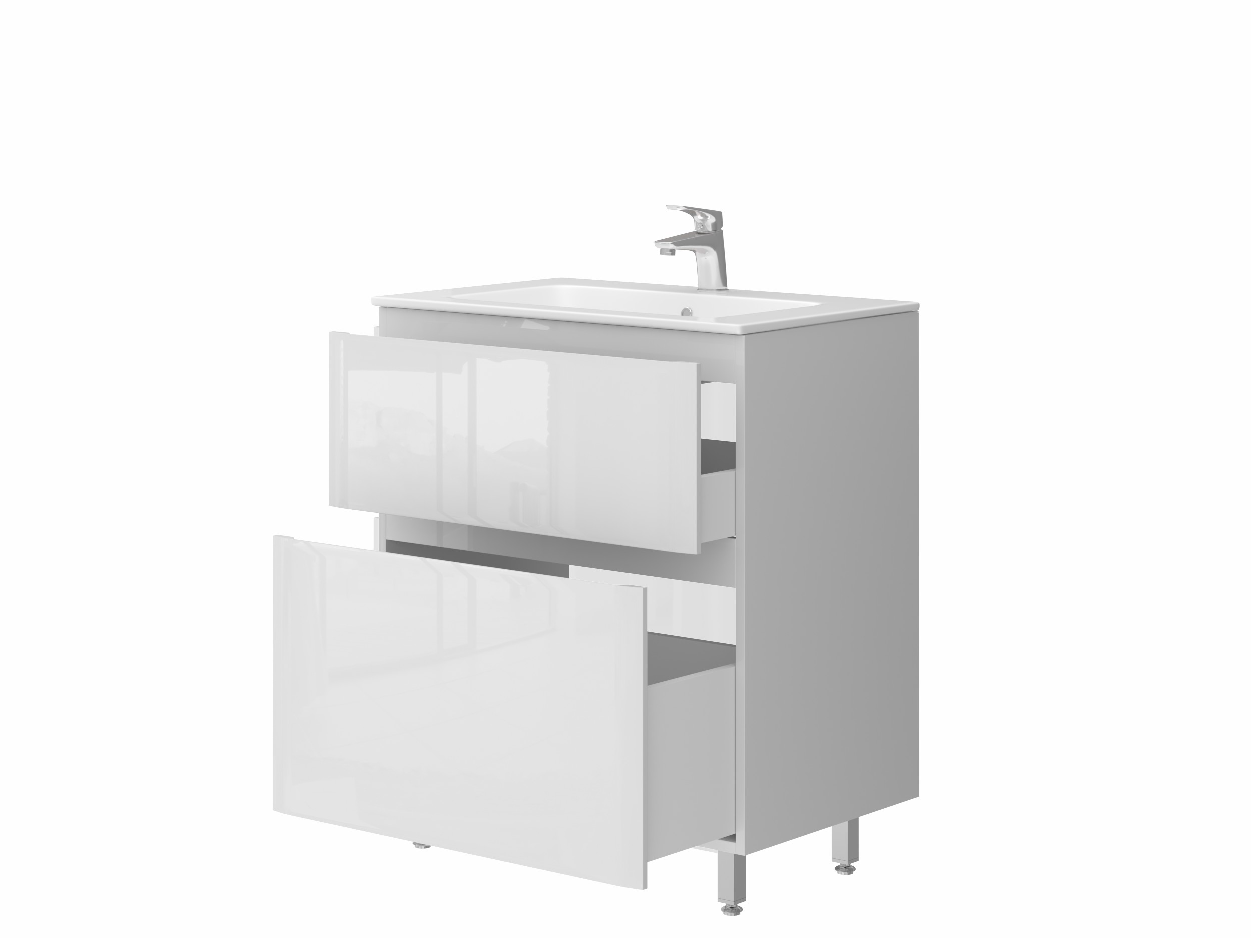 Підлогово-навісна тумба з керамічним умивальником і двома шуфлядами з функцією самодотягування та плавного закривання. Фасадні частини з МДФ, мають якісне лако-фарбове покриття. Яскравий дизайн, максимальна вмістимість, зручність.
