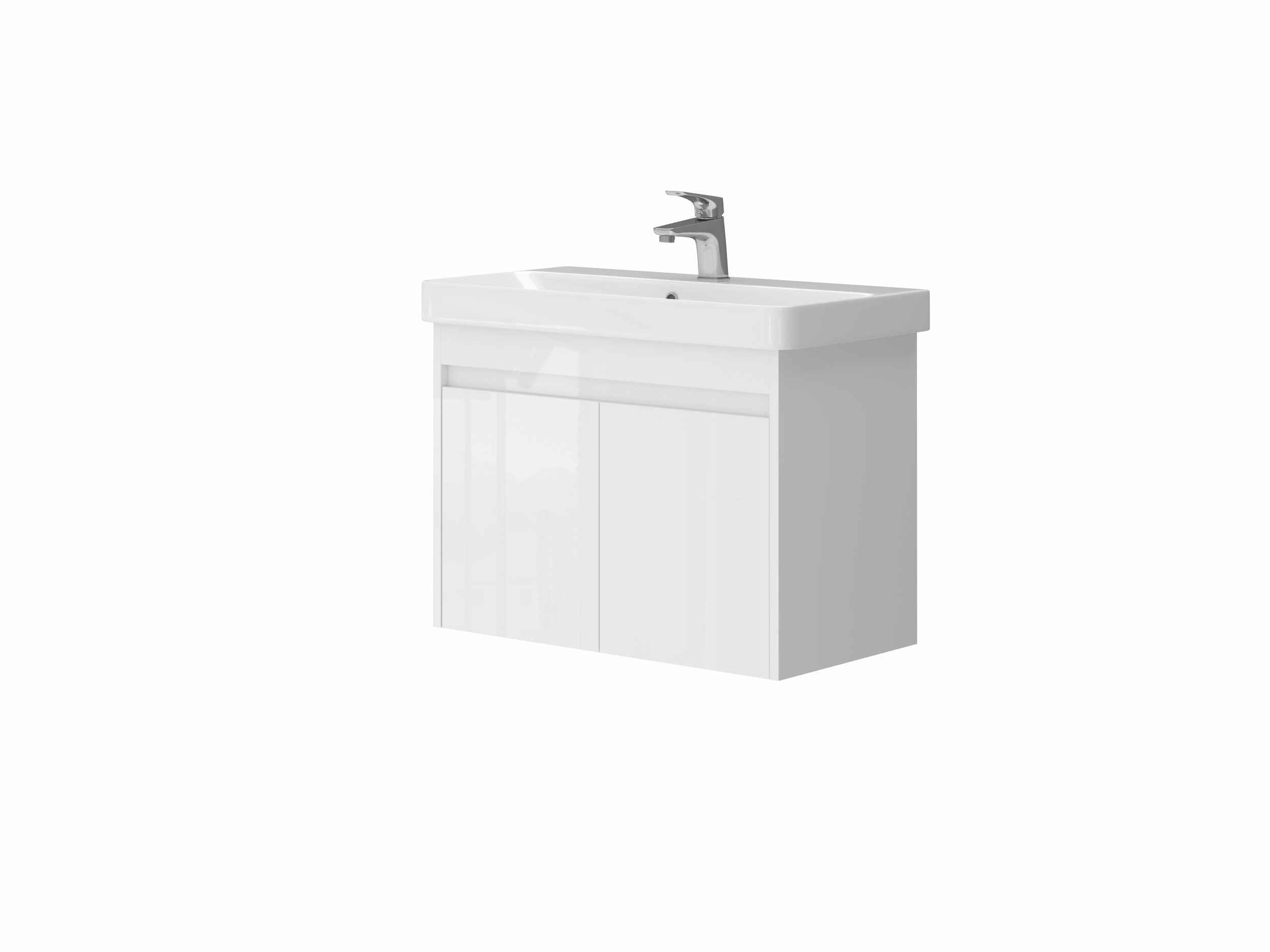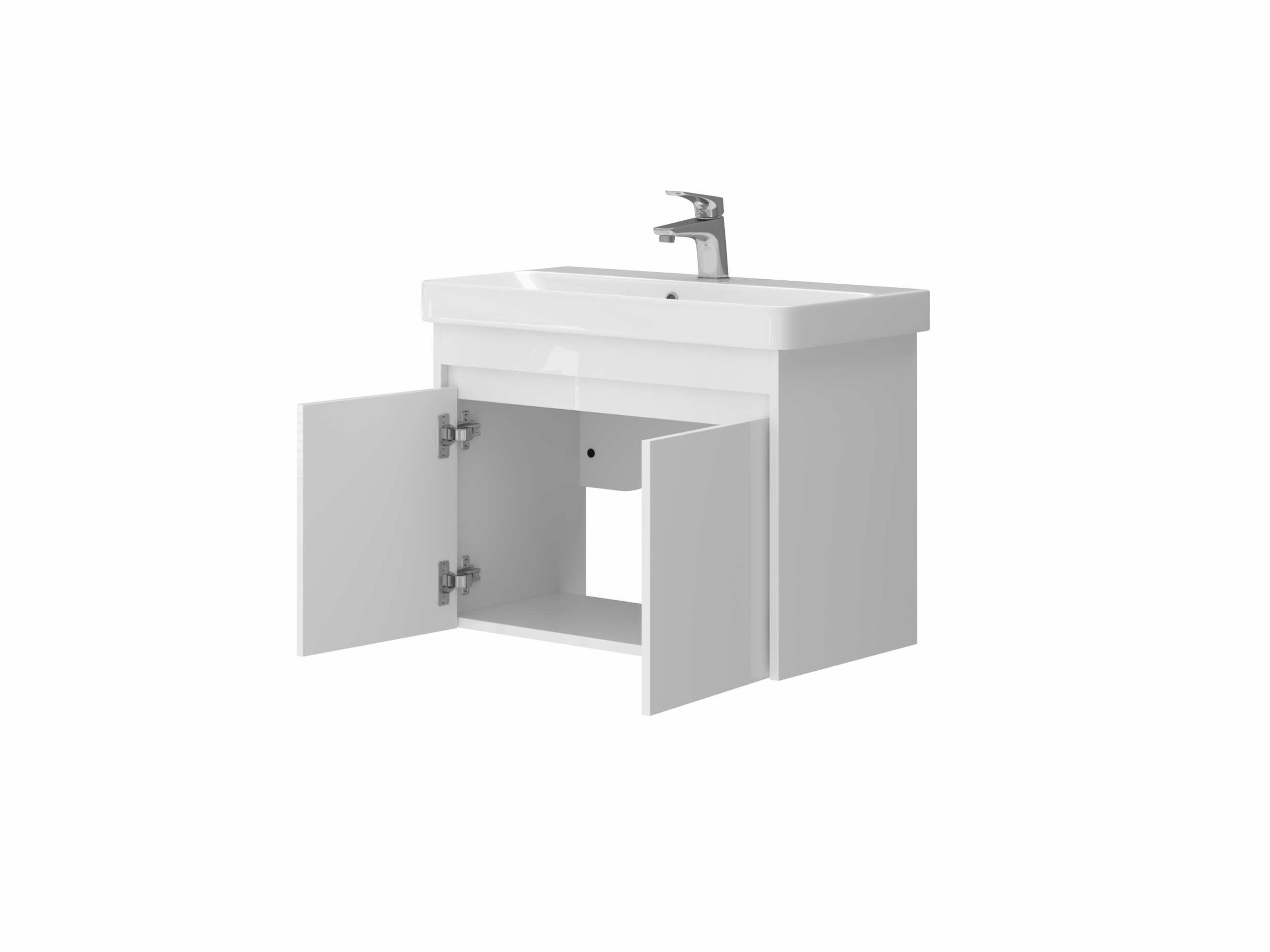 Навісна тумба з керамічним умивальником і дверцятами з функцією плавного закривання. Найкращий вибір для невеликих санвузлів за мінімальну ціну.