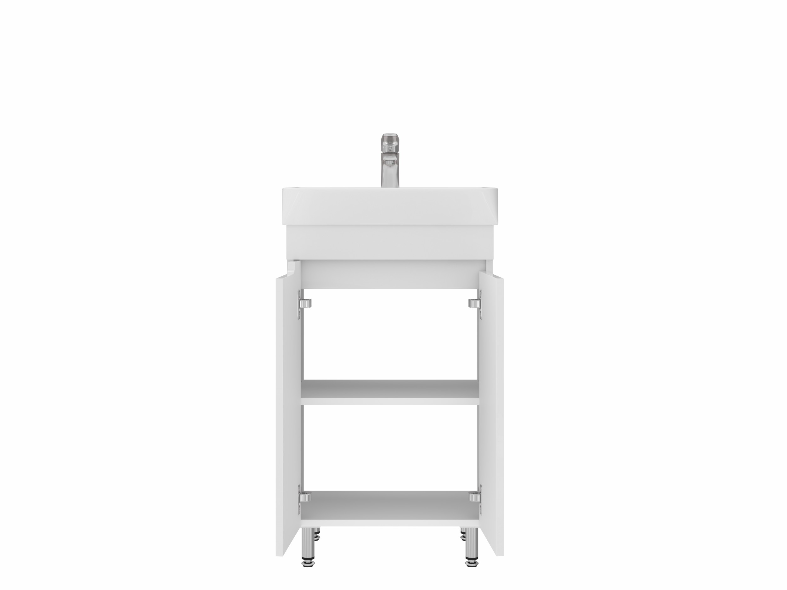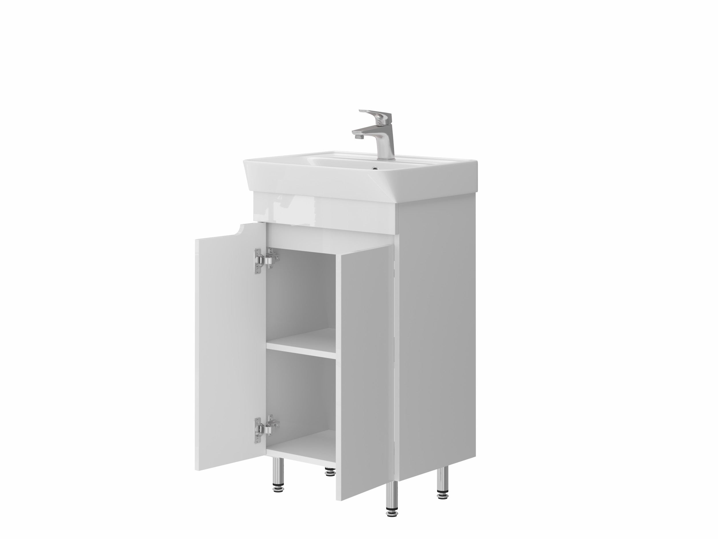 Підлогова тумба з керамічним умивальником і дверцятами з функцією плавного закривання. Фасадні частини з МДФ, мають найсучасніше лако-фарбове покриття. Гарантовано довговічність.