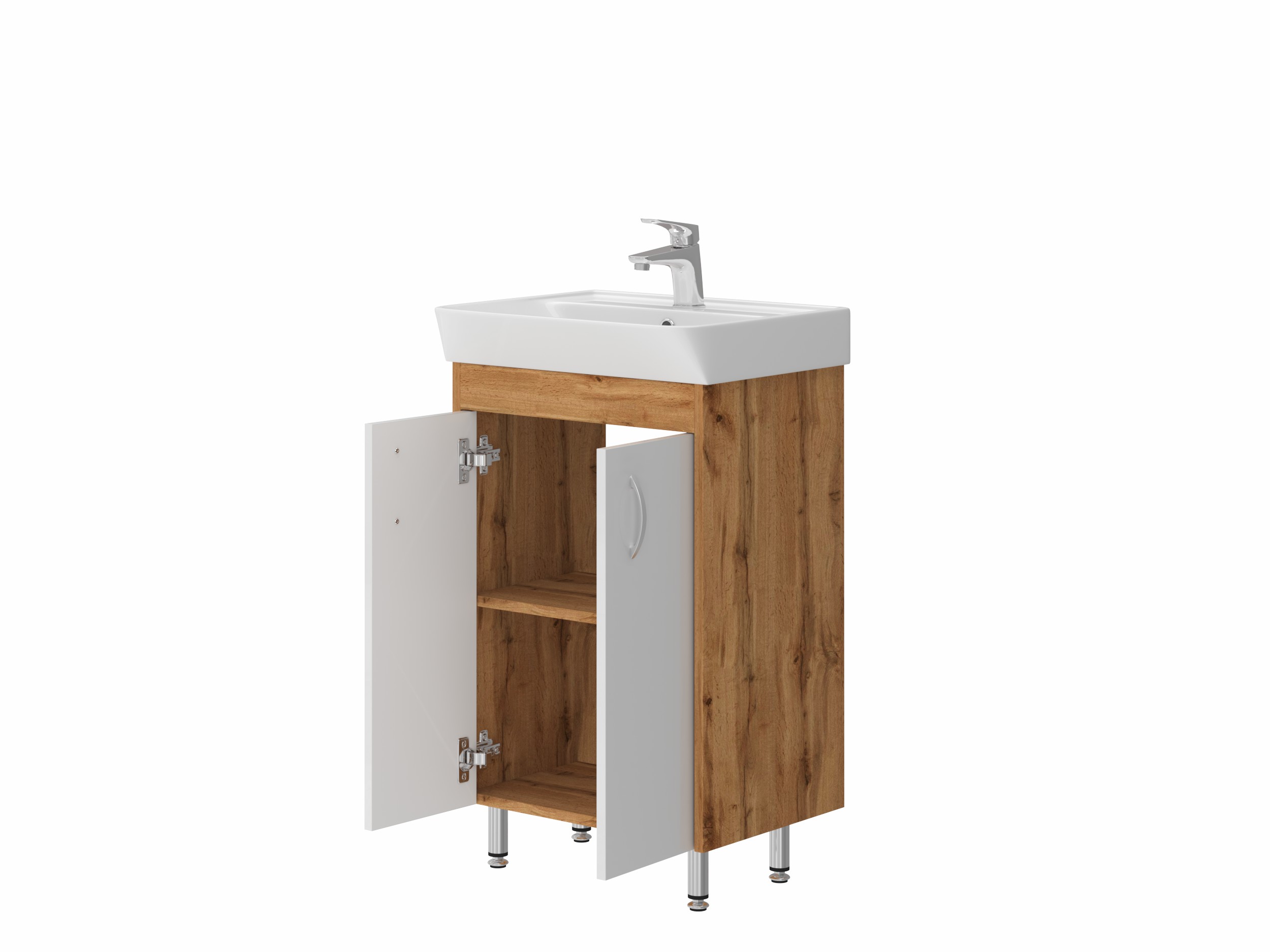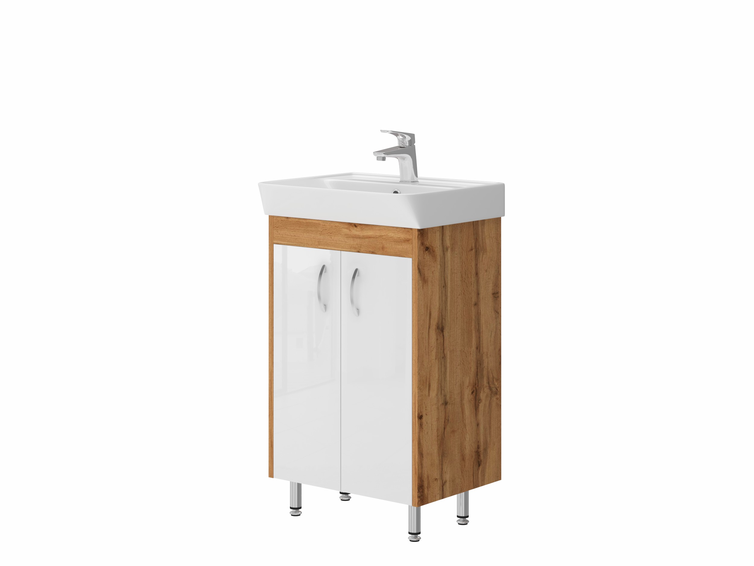 Підлогова тумба з керамічним умивальником і дверцятами з функцією плавного закривання. Найвигідніші інвестиції в перспективі 5-10 років служби продукту.