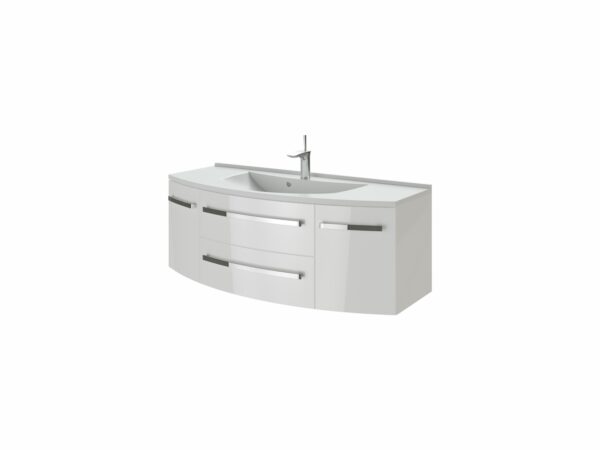 Навісна тумба з умивальником зі штучного каменю, з дверками та двома шуфлядами з функцією самодотягування та плавного закривання. Матеріал – МДФ, якісне фарбування, кольорова гама, максимум фунціоналу, ексклюзивність.